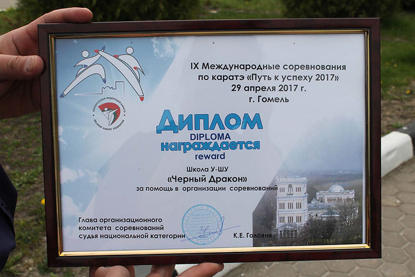 29 апреля 2017 года проходили IX международные соревнования по каратэ "Путь к успеху 2017". Команда нашей школы принимала непосредственное участие и подготовила показательное выступление с участием как взрослого, так и юного поколения из рядов учеников. За внесенный вклад в организацию мероприятия организационный комитет соревнований вручил нам диплом!